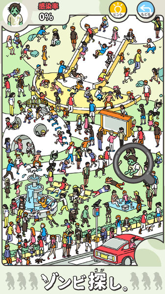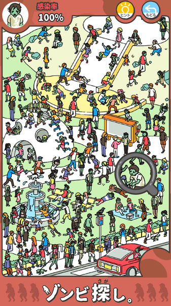 一款非常好玩的日系寻找僵尸休闲小游戏,非常简单的玩法,僵尸混入了人群中,玩家要从各个场所里将僵尸找出来,如果不及时找出僵尸,僵尸病毒会不断开始扩散,如果所有的人都感染了僵尸病毒,城市就会被毁灭,看看你是否有火眼金睛吧。