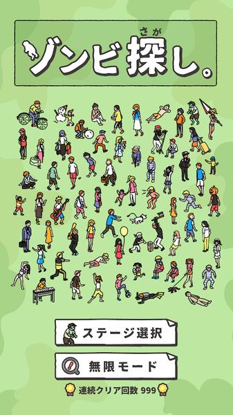 一款画风非常新奇的小游戏,虽然游戏是日文,但是对进行游戏没有太大的影响,你只要记住快速找到你要寻找的那个僵尸就可以了,可能就在你慌神的时候好多人的脸已经变绿了,这时候效率会越来越低,所以进入游戏后不要犹豫,快速锁定绿色的脸,玩着玩着还有点小激动,游戏感觉很魔性,而且停不下来,就是广告有点多,让人放松的一款游戏,可以试试哦。