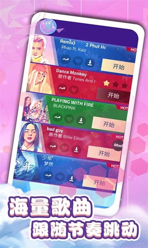钢琴块3别踩白块是一款特别具有吸引力的音乐闯关类游戏,跟随着音乐的节奏,按照音乐的节拍,不断地进行屏幕的点击,游戏中会有一个虚拟的钢琴块,点击这些钢琴块,会发出不同的音乐,但是你要注意跳跃白块,不能点击白块,否则就会导致音乐失败。