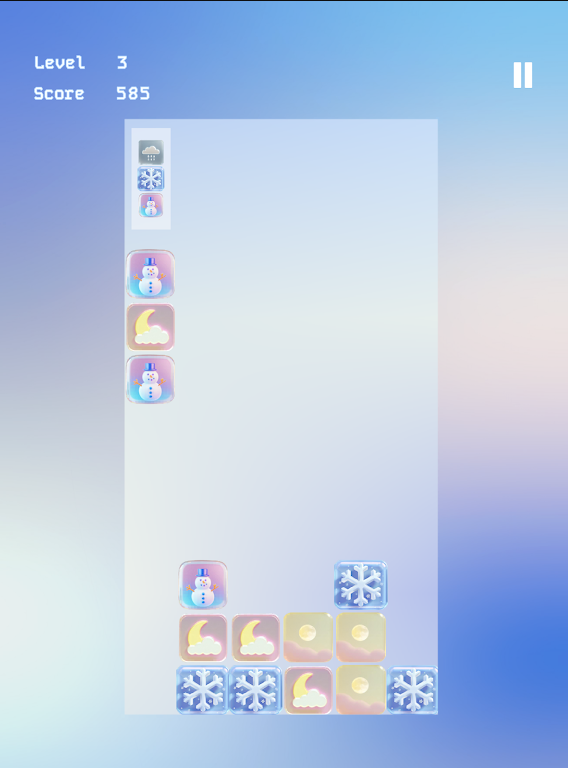 3、类似俄罗斯方块的玩法,通过坠落方式消除冰柱,给你带来复杂而有挑战的游戏体验。