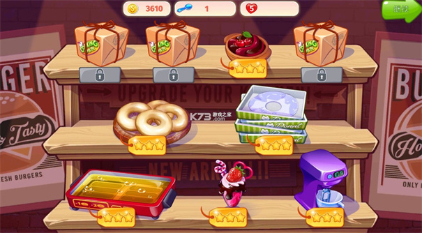 5、随着后面关卡难度的提升,我们也要开始升级厨具和食品;