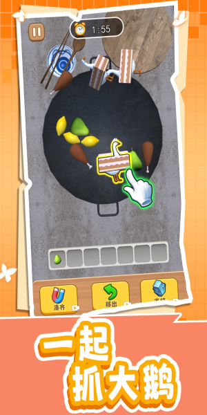 5、如果在规定时间没有成功消除所有物品,抓到大鹅则游戏失败;