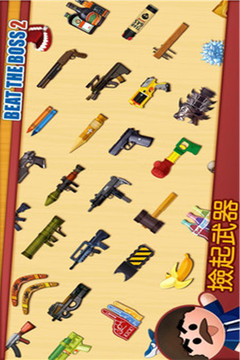 暴打老板2中文版是一款超级解压的动作闯关类游戏,各种各样的解压方式,在游戏中可以让你自由的体验,使用游戏当中的这些道具,帮助你暴打老板,快速的释放工作中的压力,游戏的内容设计特别的丰富,加入了超级经典的搞笑元素。