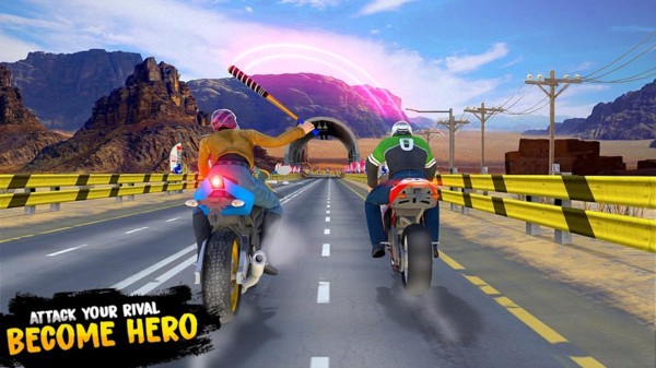 在暴力摩托英雄这个充满刺激的游戏中,玩家需要驾驶着自己的摩托车进行竞速比赛,沿途不仅需要小心躲避障碍物和陷阱,更是还要小心其他玩家的攻击,当然你也可以使用武器去攻击其他车手,想要回味经典的玩家速速来下载吧。