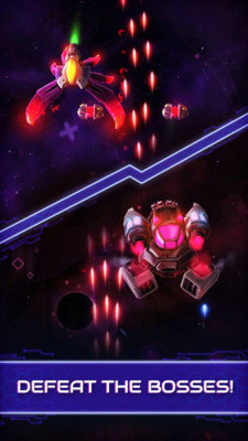 2、换装改良战机武器,打造个性化的战舰,保卫你的星球免受威胁。