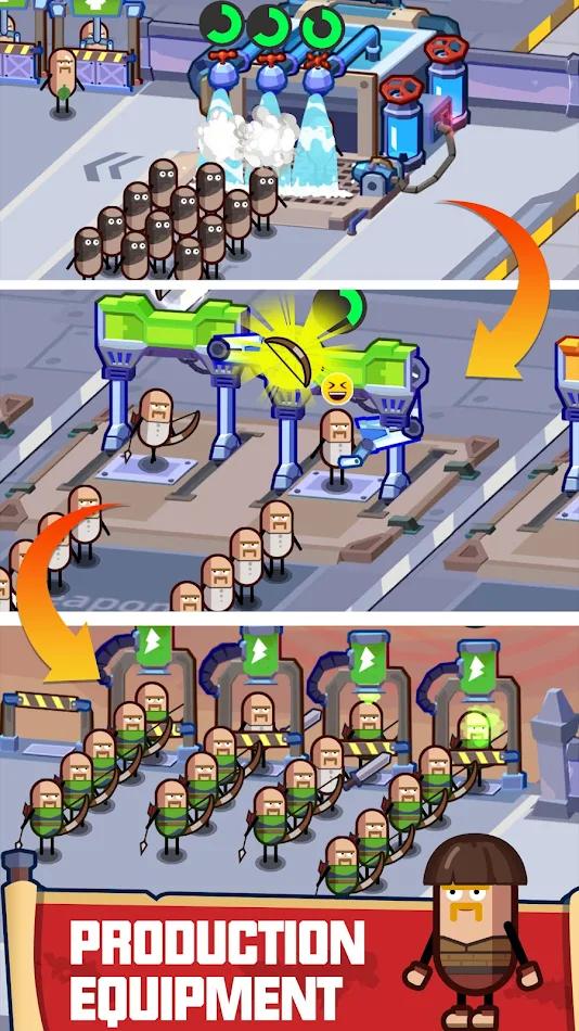 1.会打造出属于自己的英雄工厂,也会在游戏中看到造型各异的士兵角色。