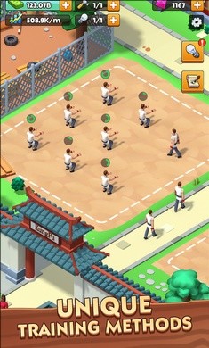 在游戏的后期,玩家可以逐步扩大功夫学院的规模,让自己的功夫学院可以容纳更多的学员,游戏里的每一项课程都需要玩家采购不同类型的武器,需要玩家将这些武器全部发放给指定学员,让这些学员参与武术练习。