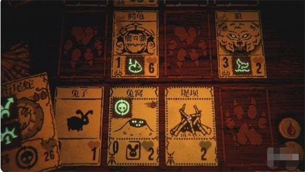 6、门右边有一副油画,有时会画着牌桌和卡牌。如果在对战时,在己方牌位上摆出和油画相同的阵形(此时画面会震动),即可解锁油画特殊奖励。对战结束后,哪怕死亡重开也可以在油画中领取奖励。只有领取了奖励后,油画才会开启下一次任务。获得油画奖励后,靠近油画时会出现视觉干扰(暗示主角头上长了个摄像机?)。目前油画奖励有三次,奖品分别是:四叶草(新牌三选一时可重抽一次),蜡烛(增加一次死亡机会),金蜜蜂(将松鼠牌堆替换为蜜蜂排堆)。领取三个奖励后,油画似乎不再变化了。