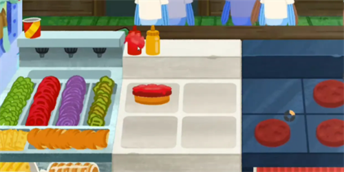 6.点击每个配菜就能完成蟹皇堡的组装,一定不要忘记放酱料哦,制作好的汉堡拖动给对应客人即可