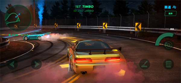 3、当玩家经过玩到时可以在一定速度接近转弯处时,转弯并点击手刹按钮开始漂移