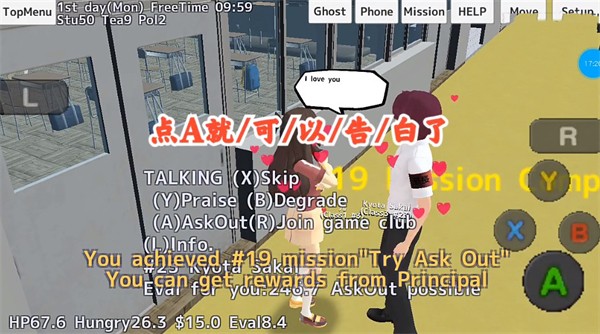 3、最后对话点击a就可以进行告白,成功之后就可以谈恋爱了。