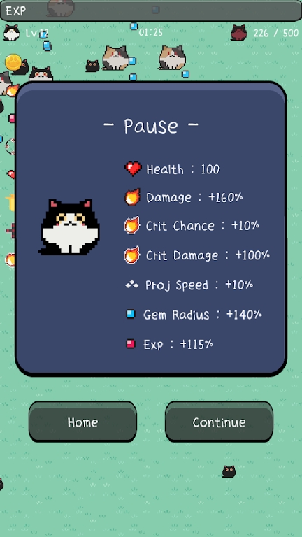 喵幸存者是一款像素画风的割草手游。游戏中玩家将控制的是一只非常可爱的猫咪在关卡中与其他猫咪战斗,通过击败敌人来提升等级,获得选择技能与奖励的机会,不断地强化自己的战斗能力,直至面对最后的终结大BOSS。