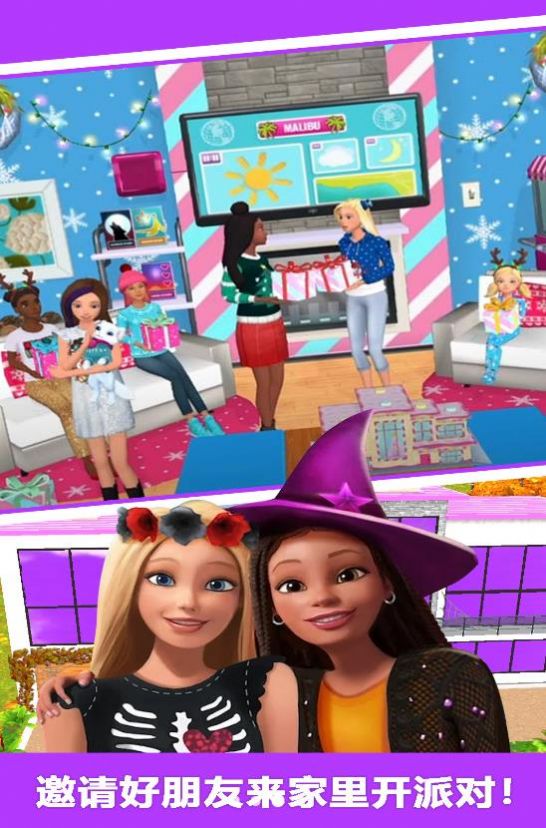创造你自己的芭比梦幻屋体验。快来参加梦想之家的各种好玩的活动,烘焙、跳舞或者经典的泳池派对。开着我的粉色敞篷车,出发去探索马里布,参加更多有趣的活动。另外,请帮我和我的朋友们打扮一下,拍出漂亮的照片。