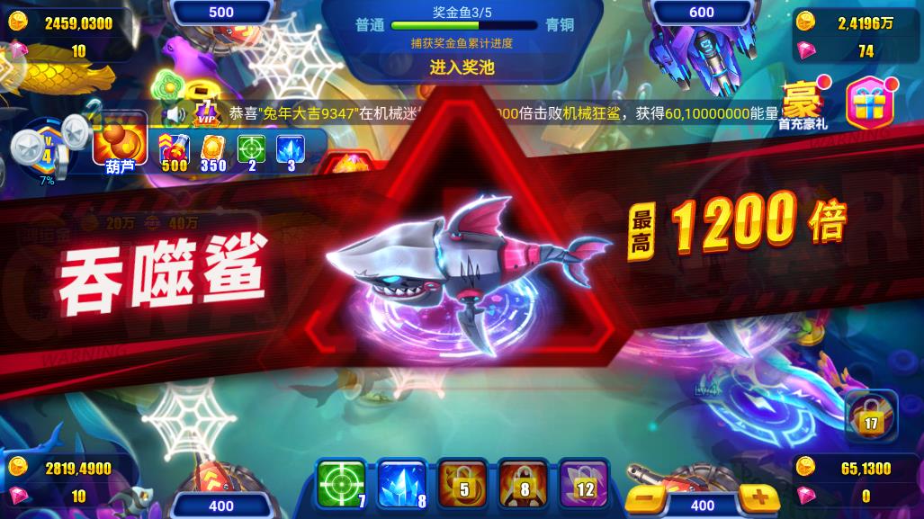 3. 奖励丰厚:游戏中的奖励非常丰厚,玩家可以通过捕鱼获得金币和道具等奖励。
