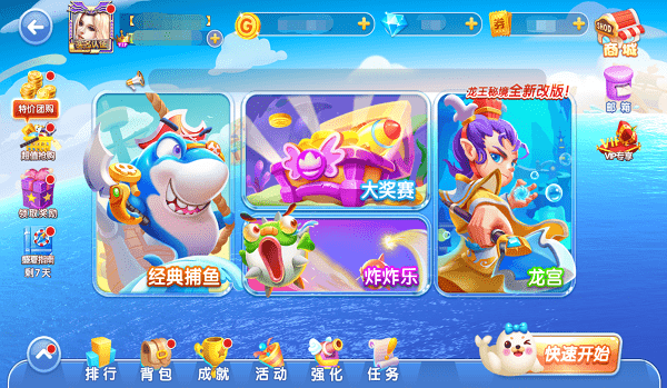 3.丰富的道具和技能:游戏提供多种道具和技能,如炸弹、冰冻、加速等,玩家可以根据实际情况使用,提高捕鱼效率。