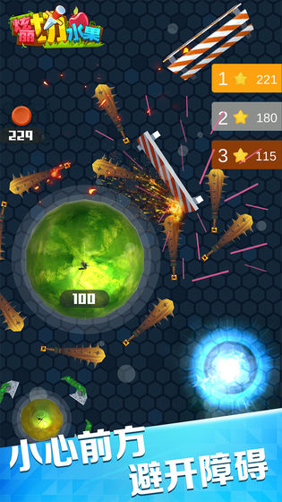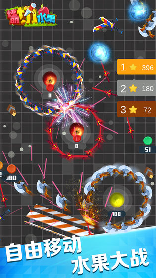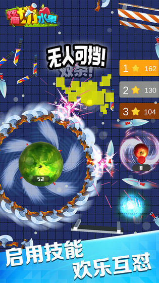《绚丽切水果手游》不同于常规的切水果游戏,这是一款操纵水果吸附周围零散的飞刀形成自己的飞刀防护壁,吸附的飞刀越多,飞速旋转的刀环的攻击力就越强,击溃其他水果的防御,获得爆切水果的快感!在享受切爆美味多汁水果的爽快手感的基础上,加上吞噬元素,与其他游客进行飞刀竞技对抗!游戏中设有多种障碍道具,会剥离你的飞刀防护壁,一定要小心哦!除此之外,游戏中还可以排位和组队,你不仅可以享受制霸排位榜的王之蔑视,还可以与队友并肩作战,切爆对面小苹果!