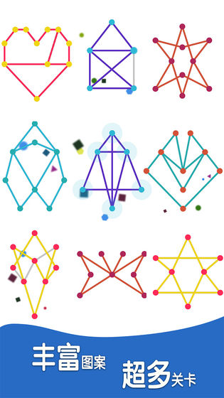 丰富的关卡,丰富的游戏关卡,烧脑的游戏模式,玩家需要仔细观察每一点滑动屏幕,一笔一笔地从开始到结束。