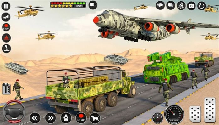 这款游戏的画面优美,音效逼真。游戏中的场景和车辆都经过精心设计,给你一个真正的军事氛围和卡车驾驶的细节。声音也很好,让你感觉你在一辆军用卡车的驾驶舱里。还可以通过任务来获取个各种各样的奖励。