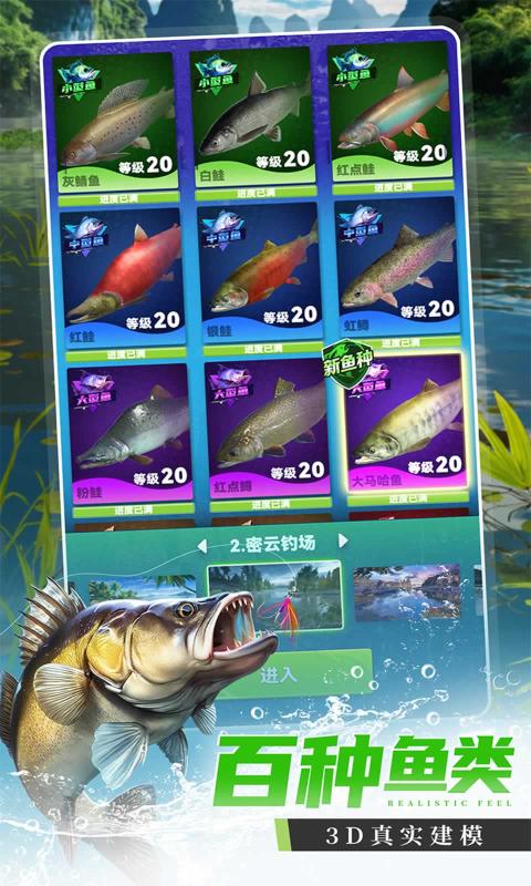 2. 丰富的鱼类种类:游戏中包含了各种常见的淡水鱼种,如鲤鱼、鲫鱼、草鱼等,还有各种稀有的鱼类等待玩家去发现和捕捉。
