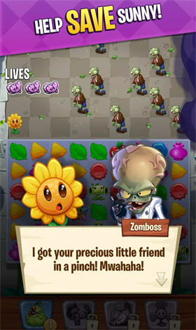 植物大战僵尸匹配版是新出的版本,带来了独特的玩法,融入了三消元素,搭配三种不同的植物来抵挡僵尸的入侵,能够带来非常强大的伤害力,炸翻所有僵尸,进行合理的搭配才能带来连锁反应,轻轻松松获得胜利。