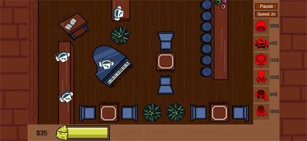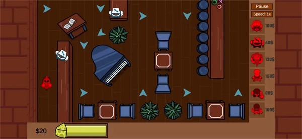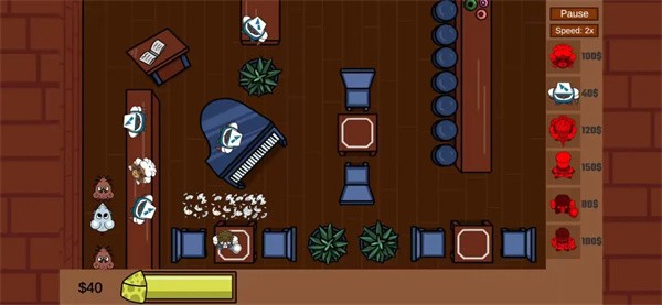 2、玩家将要按照里面提供出来的各种厨具,使用金币解锁策略布局消灭老鼠,合理摆放厨具的位置,帮助自动瞄准射击消灭偷吃的老鼠、