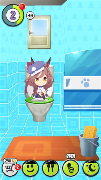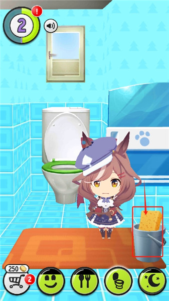 4、我们可以观察一下下面的图标,曼波现在可能会有点想上厕所,我们点击上厕所。