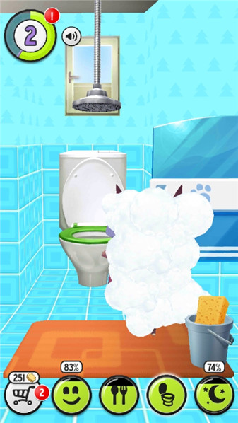 8、然后我们点击上面的莲蓬头,为曼波洗干净。