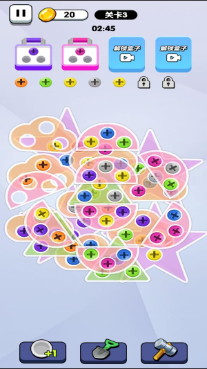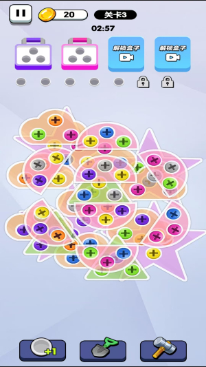 2、每个关卡都是精心设计过的,玩起来十分烧脑,螺丝的颜色不一样,可不要看混哦。