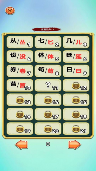 智趣梵汐是一款寓教于乐的手机游戏,游戏中有非常多的关卡,每一关都有着不同的汉字谜题,大家可以在关卡中体验到中国汉字的博大精深,在成功通过后即可解锁并开启下一关,并且游戏的肝度不高,很适合在想要放松的时候来一把。