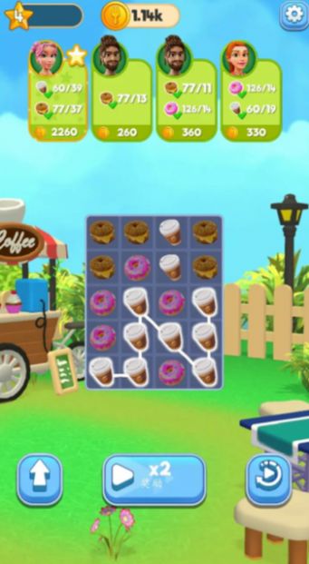 1、游戏的主要玩法是将三个或以上的相同食材连成一线,消除它们并获得分数。
