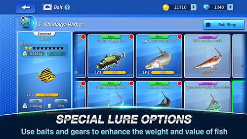 1. 钓具定制:玩家可以根据需要自定义钓竿、线轴、鱼饵等钓具,以适应不同的钓鱼环境和目标鱼类。