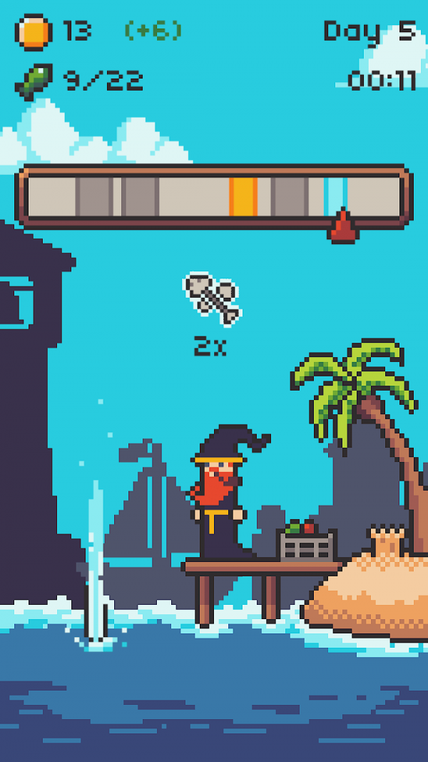 《巫师钓鱼》一款像素风格的钓鱼模拟游戏,而且在巫师钓鱼游戏里你会发现各种神奇的鱼,然后在巫师钓鱼游戏中,每天,你都要钓到一定量的鱼,如果成功的话,你可以在便利的魔术店购买新魔术哦,感兴趣的下载吧。