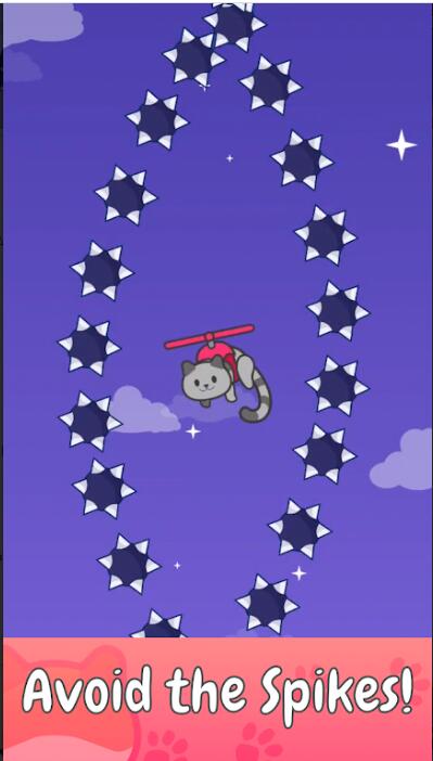 猫式直升机是一款非常好玩又有意思的趣味休闲飞行闯关冒险游戏,在游戏中,玩家将能够去操作一个会飞的猫咪进行冒险,游戏里面玩家需要去小心控制猫咪的飞行方向,注意躲避飞行途中遇到的障碍物,游戏十分轻松愉快。游戏内容丰富精彩,趣味性十足,欢迎广大玩家进行下载猫式直升机。