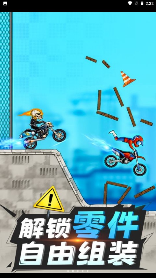 3.摩托车特技表演手游画面采用仿真建模。你需要骑你最喜欢的摩托车在一个具有挑战性的轨道上,享受一个真正的物理引擎的经验。