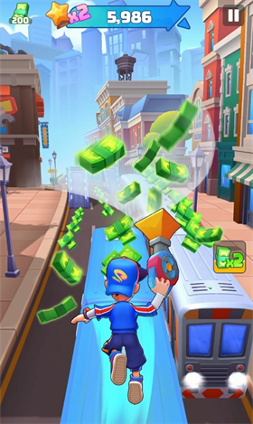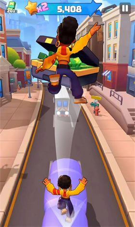 1、游戏中玩家需要在城市的街道和建筑间快速奔跑,躲避障碍物,获取积分