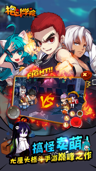 【优化出招设计,萌妹子也能打电竞】告别繁琐搓招,优化格斗设计,《格斗学院》带给玩家最畅爽的游戏体验!酷炫连招,轻松上手,妹子也能打电竞!你的对手,可能就是超萌小萝莉哦!