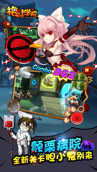 《格斗学院》以校园风格为背景,在那狼牙区!在那飞虎路!这就是无法无天的格斗学院!公交不敢进站,出租不敢停靠,没有人敢得罪你留级魔王赵日天!拳打孙悟空脚踩阿拉蕾,这片高中,已经是你制霸的领地! 《格斗学院》拥有独家英雄变身系统,多种炫酷英雄供玩家体验!超级红巨人大战机械达人,黄大锤大战八岐无双,子龙拜倒女王裙下…各种英雄重现江湖,想想还有点小激动!