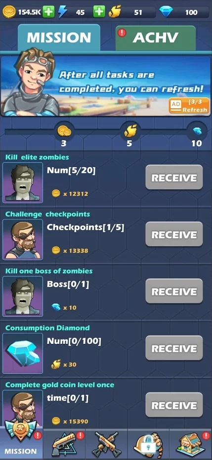 你需要努力提升自己的实力,让自己可以轻轻松松击败各种僵尸,完成游戏的任务。