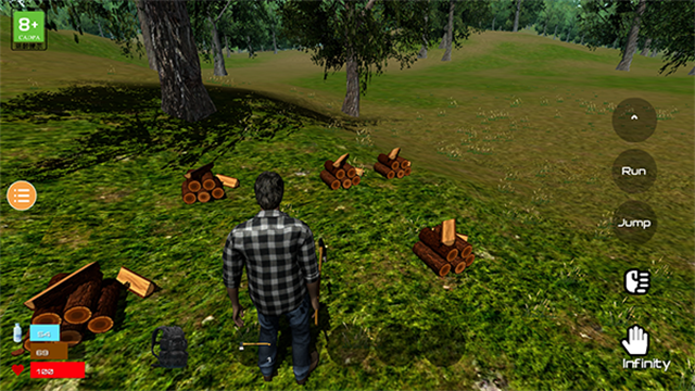 5、砍树可以获取木头可以生火,建房子等功能,要注意角色左下角健康状态及时补充。