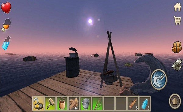 《木筏求生联机正版》游戏中,玩家身处茫茫大海,资源匮乏,生存成为首要任务。玩家需要利用手中的钩子,不断从海洋上漂浮的物资中搜集必需品,如食物、水、建材等,以维持生命并不断扩大自己的生存空间。同时,玩家还需要合理规划资源的使用,确保在危机四伏的海上环境中能够长久生存。考验玩家的生存能力。