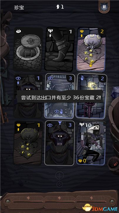 游戏中的卡牌种类还是非常丰富的,补充移动值或是获得装备合成材料的道具卡,守护财宝的各种守卫卡,以及改变环境的机关卡等等,每次行动都会随机到不同的卡牌,游戏变数相当大,玩家需要针对不同的情况改变自己的路线,当没有剩余的卡牌之后玩家即可从出口卡中逃出并完成游戏进入结算。