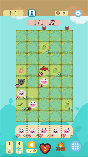 这款游戏前期即便是不规划体力安排也可以轻松通过,但是在游戏的后期,怪物的数量会增多,并且血量也会有所成长,玩家需要仔细安排各个棋子的技能以及作用将怪物消灭。