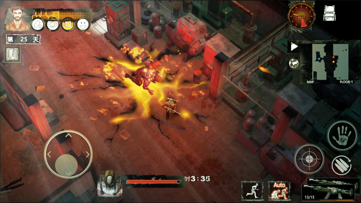 2.强大的敌人设计:15种以上各具特点的僵尸和8个大Boss,使得求生之旅充满挑战,考验玩家的战斗技巧和反应速度。