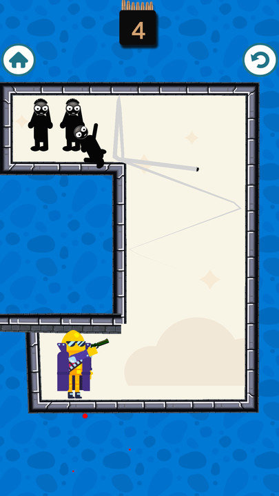 3.子弹数量有限考验你的射击精度,灵活利用障碍物反弹击中目标。
