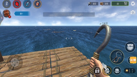 木筏生存冒险这款生存冒险游戏的地图场景是在庞大的海洋中,大家可以驾驶着自己的木筏,不断的进行游荡探索,可以在荒野地图场景中采集更多可利用的木材和道具,能够利用自己强大的生存技巧钓鱼摘果子等,更好的保证自己的基础生存物质资源。