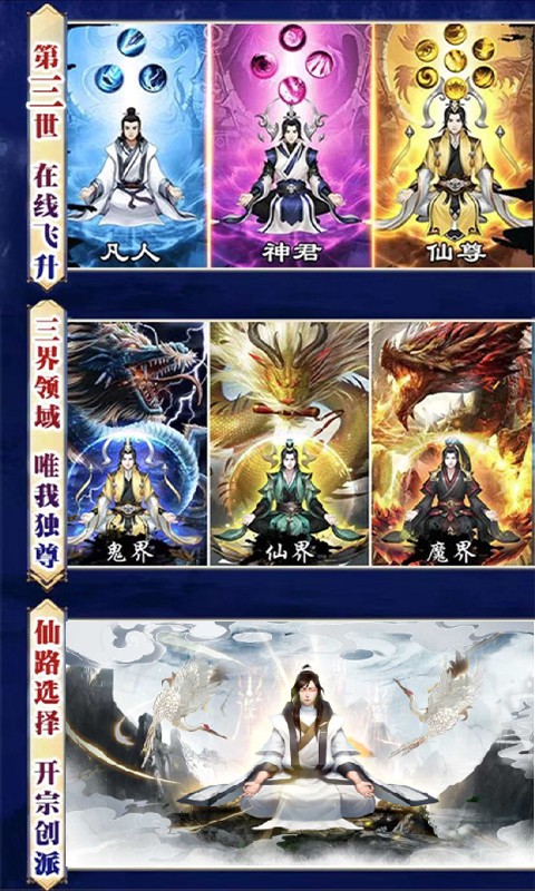 通过进阶获得更加强大的战斗力,拉风坐骑,霸气神兵,酷炫法器,绚丽仙羽,快来谱写属于你的仙界传奇。
