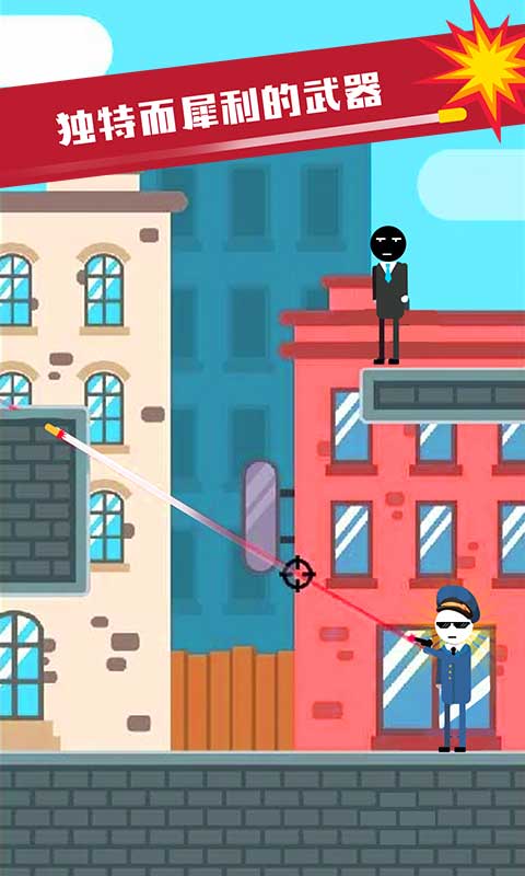 1、简约版的动作射击游戏,弱化枪战,融入物理解谜游戏,火柴人警察想要消灭坏蛋、间谍,不仅需要精准的枪技,而且必须动脑子。