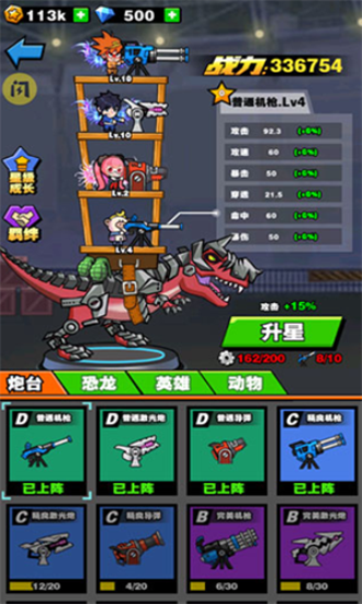 每个关卡给玩家呈现出来的都是全新的挑战,让玩家可以时时刻刻拥有着最新鲜的感受,体验到游戏所带来的乐趣,游戏提供的武器种类可是非常多的,不管是什么样的角色和恐龙宠物,都可以让玩家不断的增强自身的实力,有着更加强大的属性,通过战斗的方式就可以帮助玩家获取碎片,才能够让大家进行合成升级。