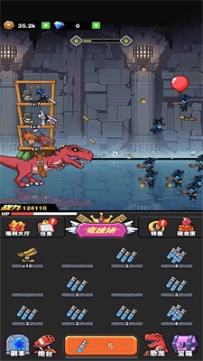 1.自带放置玩法,玩家只需要不断合成药水帮助恐龙进化,非常容易上手。