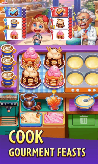 3、设有多个关卡和任务任务,通过完成任务获得金币和道具奖励,提升自己烹饪技巧。